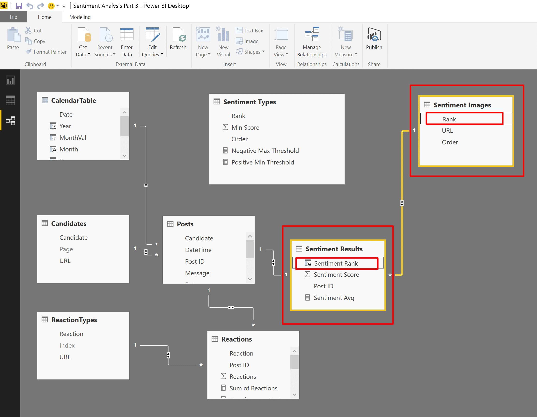 So let’s keep this table disconnected, and instead, create a relationship between Sentiment Images and Sentiment Results.