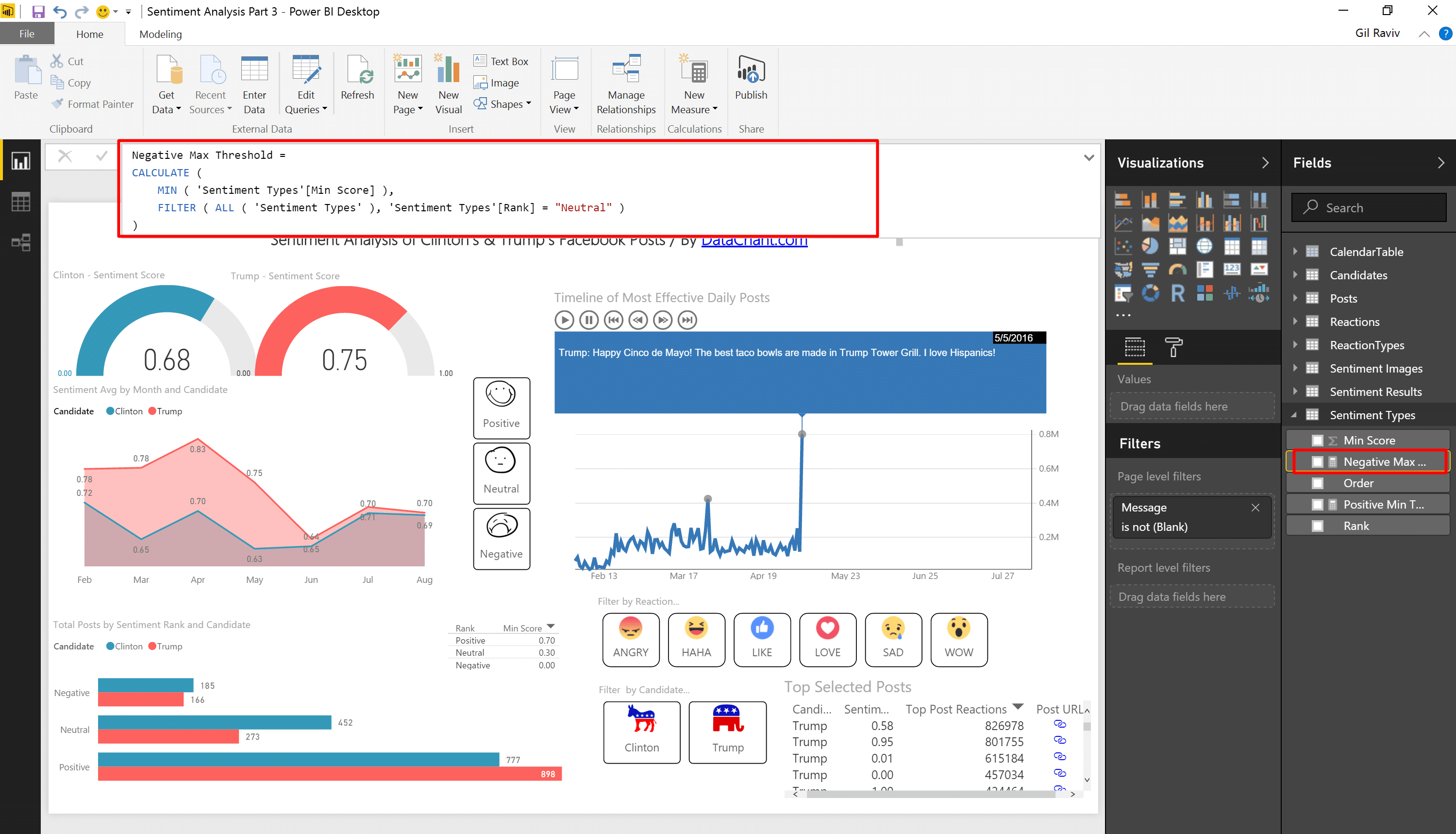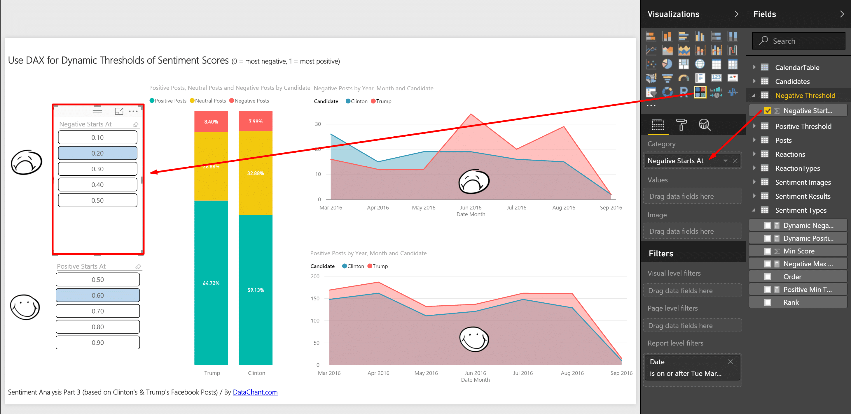 Use DAX and Slicers to define thresholds for Negative & Positive Sentiment