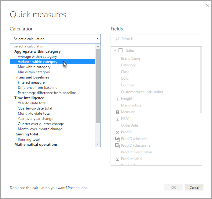 While DAX does require you to embark on a journey of discoveries (Start here and move your way to here, here and here), a massively growing community of Excel and SQL Server practitioner can testify that DAX has transformed their careers. Nevertheless, quick analysis is crucial in any BI tool, especially for common questions. To answer this need, Microsoft released the Quick Measures on April, 2017. With Quick Measures (which is still in preview), you can perform a wide range of common calculations without the need to learn DAX.