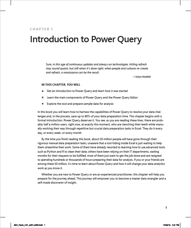 First Page of Chapter 1 “Introduction to Power Query” by Gil Raviv | Aug 15, 2018 | Book | 2 comments Today I got from the production team the first chapters of the book for final proofreading. I had to share with you a screenshot of the first page of Chapter 1: Pre-order the book here. Follow @gilra Related 2 Comments Jessica Jolly on August 16, 2018 at 10:02 am Can not wait for this book! When I teach Power BI and talk about PQE, lots of folks have bever been in it. !!! Reply Gil Raviv on August 16, 2018 at 10:13 pm Thank you Jessica Reply Leave a ReplyCancel reply