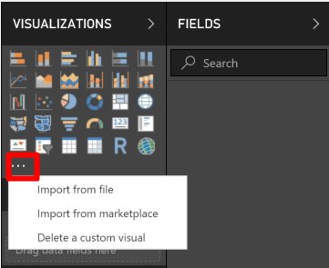 To find your organization’s visuals, select the highlighted ellipsis in the Visualizations panel, and select Import from marketplace.